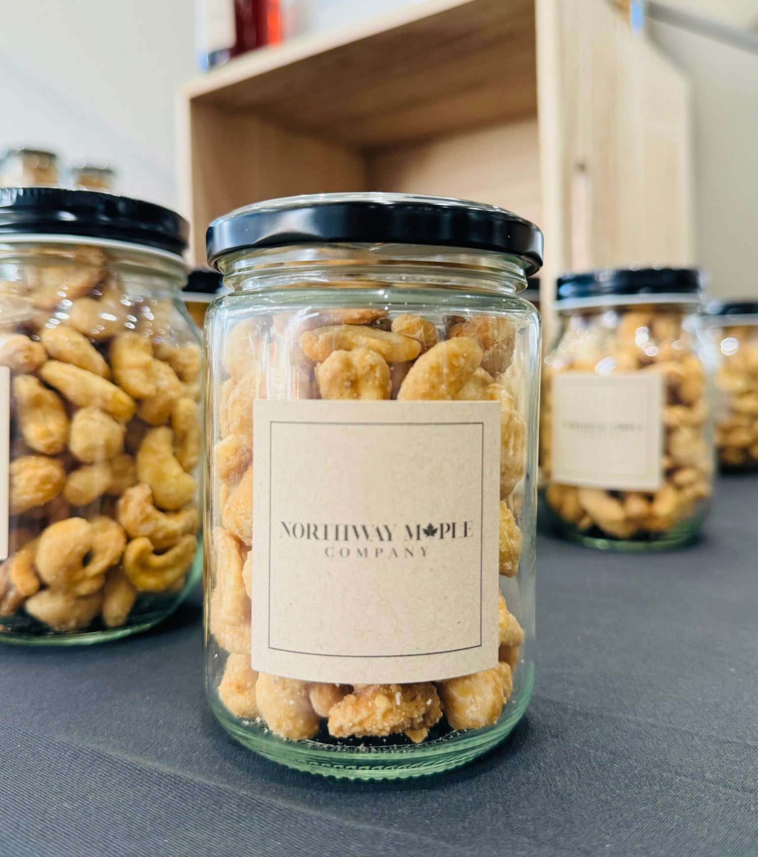 Northway Maple company is a locally own business ran by young entrepreneur Britton Wheeler. He started his journey at 11 years old by tapping tree on his very own property collecting the sap and Turing it into maple syrup. At 13 he started expanding his knowledge, and started creating cashews. Not only making them at 13 but also starting his own company to sell them. The name Northway Maple came from his great-grandfather soda shop.
